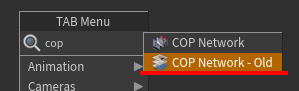 ちなみに COP Network -Old は旧世代の Compositing用ネットワークでコペルニクスではないのでご注意ください。