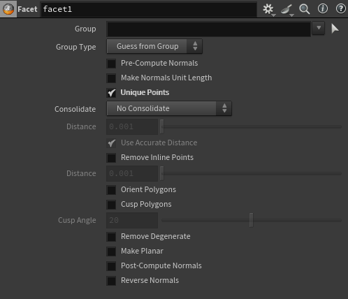 https://www.sidefx.com/docs/houdini/nodes/sop/facet.html