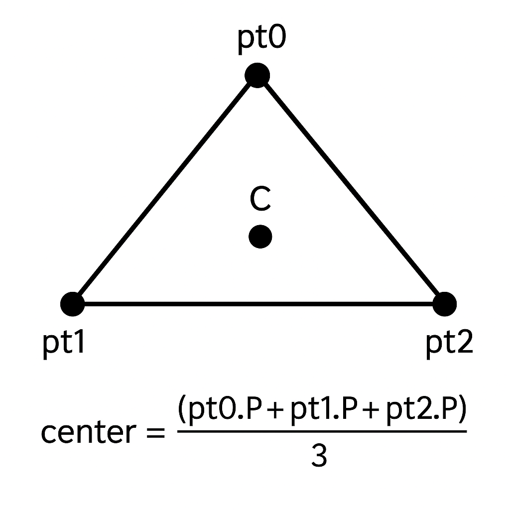この記事では、各プリミティブ中心と頂点位置の差分をベクトル化し、