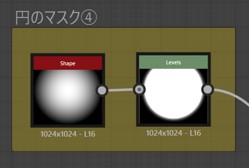 「Shape」ノードで円を作成し、「Levels」で階調をハッキリさせました。