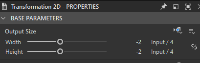 「Transformation 2D」ノード上部の「BASS PARAMETER」「Output Size」の数値