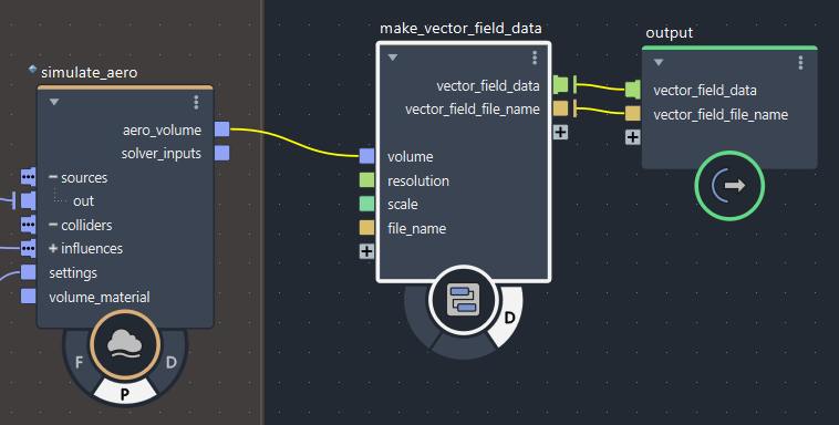 サンプルデータを『simulate_aero』に接続してスクリプトを実行することで、.fga を書き出せます。
