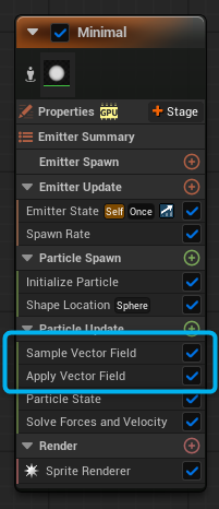 Niagara で Vector Field を使用するには以下の2つのモジュールが必要です。