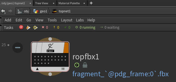 最後に Topネットワークで ROP FBX Outputノードを作り破片1つ1つのFBXを出力しています。